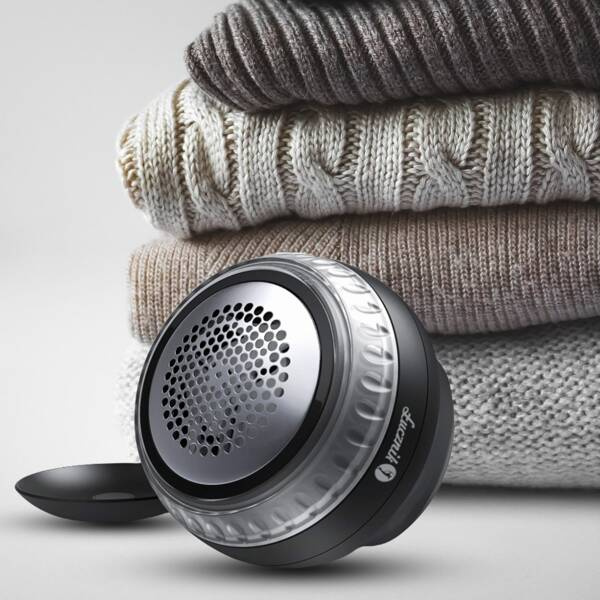 Trójramienne otrze ze stali nierdzewnej • Specjalna siatka ochronna o strukturze plastra miodu • Dokładne golenie bez uszkadzania odzieży użytkowania (blokada bezpieczeństwa) • Szybkie i wygodne ładowanie przez złącze USB • Otwierany pojemnik na kłaczki/meszek
