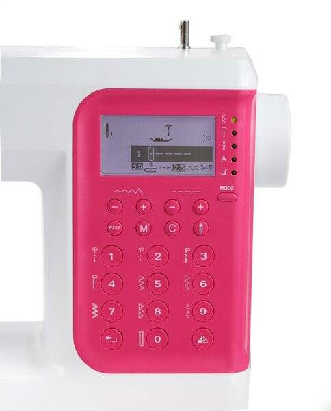 Szycie maszynowe, Automatyczne ryglowanie, Automatyczne dopasowanie szerokości i długości ściegu, Automatyczne podnoszenie i opuszczanie igły, Funkcje ostrzeżeń, Pamięć ściegów, Odbicie lustrzane, Funkcja wydłużania wzoru, Przycisk trybu podwójnej igły