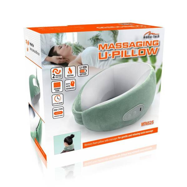 MASSAGING U-PILLOW - Luksusowa poduszka masująca kark z podgrzewaniem i z miękką pianką typu "memory".