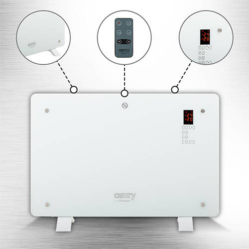 CR 7721 Grzejnik konwektorowy szklany LCD z pilotem