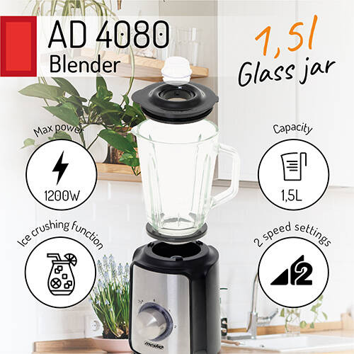 - Blender kielichowy MS4080 o mocy 1200W to wydajne urządzenie do szybkiego rozdrabniania i mieszania produktów spożywczych. Używając blendera można przygotować pyszny koktajl, owocowy sorbent, dietetyczne smoothie, pokruszyć lód do napojów i zmiksować skła