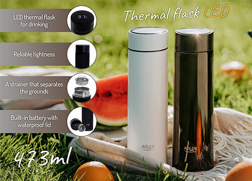 - Termos AD 4506 z wyświetlaczem dotykowym LED, wskazującym aktualną temperaturę napoju, to świetne rozwiązanie dla miłośników gorących napojów. Dzięki temu można łatwo monitorować temperaturę ulubionego napoju w czasie rzeczywistym. Wyświetlacz LED umożliw