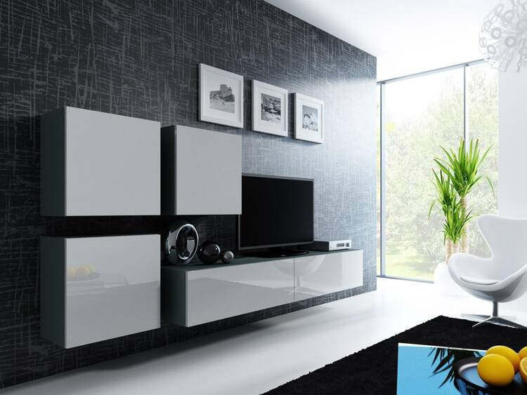 Szafka RTV VIGO '180' 30/180/40 szary/biały połysk