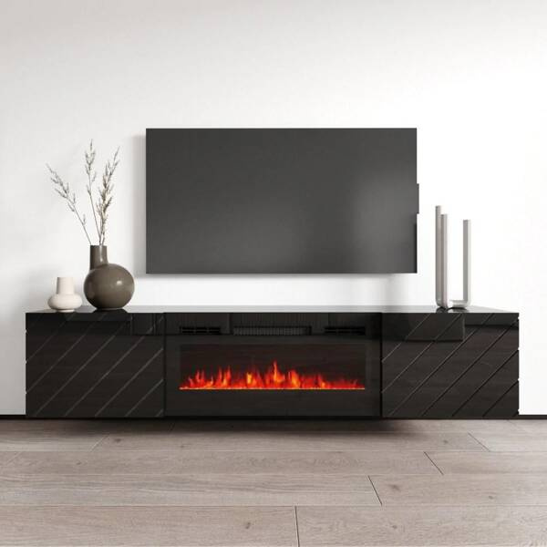 Szafka RTV LUXE 182,6x34,5x37,5 czarny/czarny połysk + czarny kominek