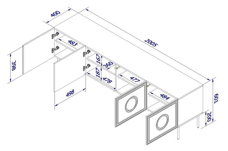 Szafka RTV PALAZZO 200x42x60 czarny + dąb craft