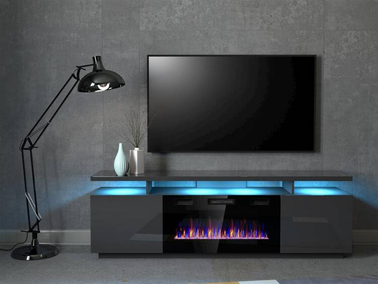 Szafka RTV EVA z kominkiem elektrycznym 180x40x52 grafit/grafit połysk