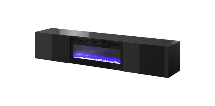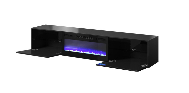 Szafka RTV SLIDE 200K z kominkiem elektrycznym 200x40xH37 cała w czarnym połysku