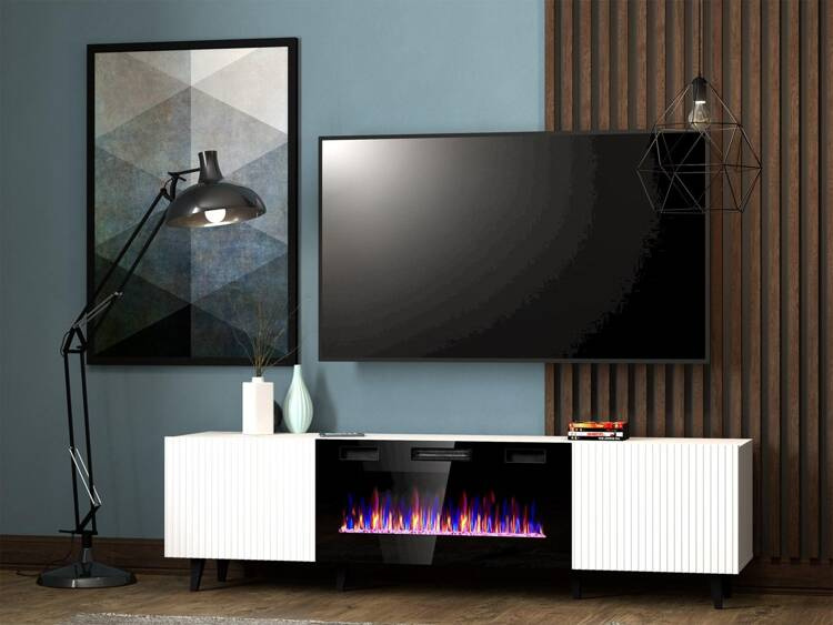 Szafka RTV PAFOS EF z kominkiem elektrycznym 180x42x49 biały mat