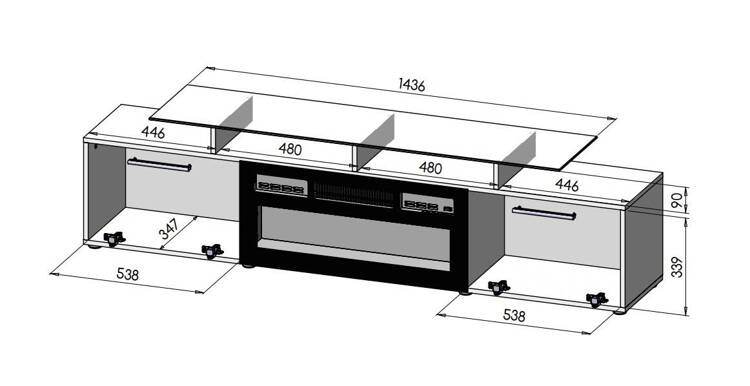 Szafka RTV ROVA z kominkiem elektrycznym 190x37x48 biały/biały połysk