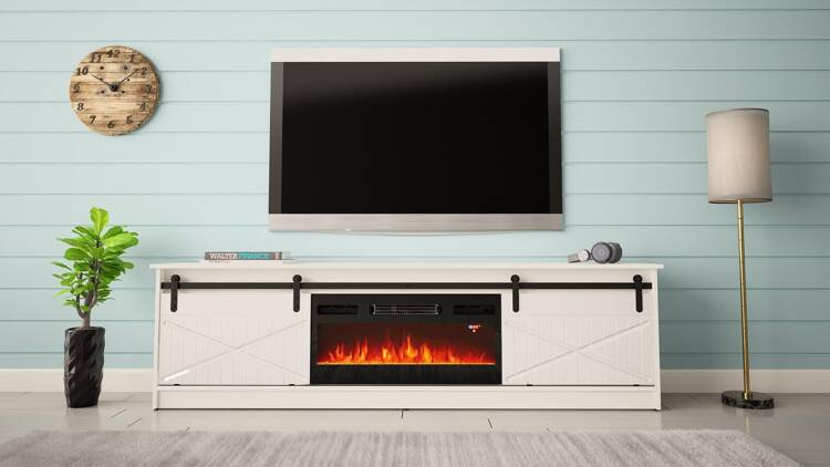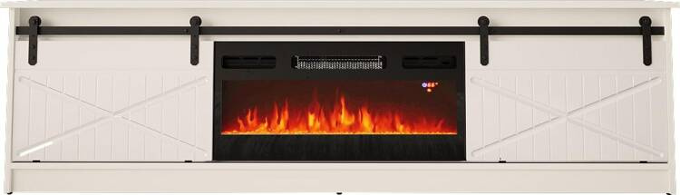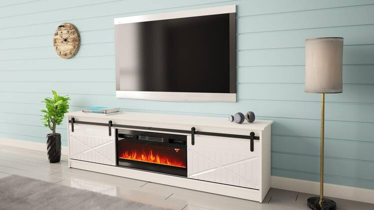 Szafka RTV GRANERO+kominek 200x56,7x35 biały/biały połysk