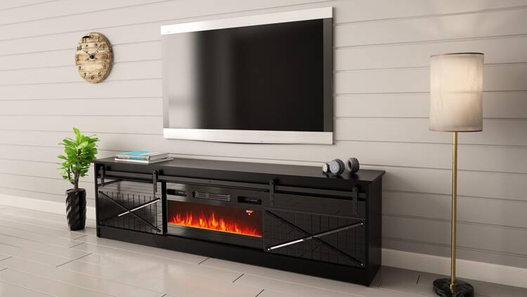 Szafka RTV GRANERO+kominek 200x56,7x35 czarny/czarny poł