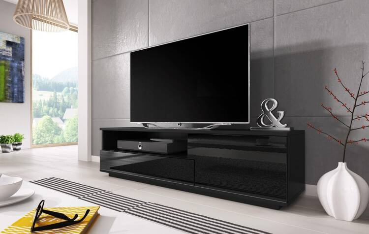 Szafka RTV MUZA 138/40/41 czarny/ czarny połysk