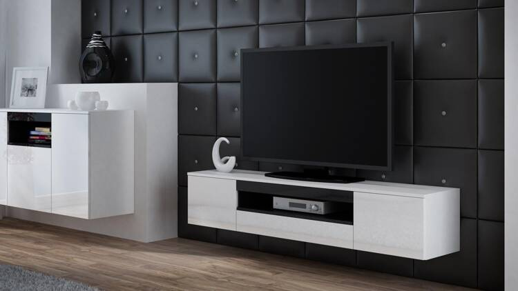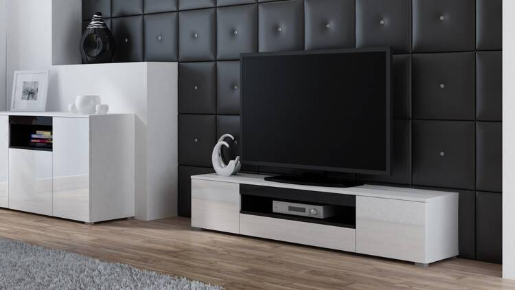 Szafka RTV VIVA 180 biały/ biały połysk+ czarny