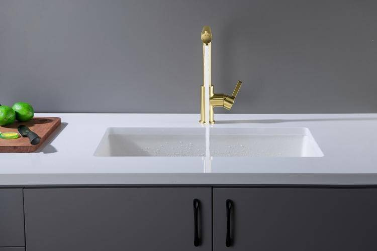 – rączka mieszacza odchyla się do przodu, dzięki czemu można montować baterię pomiędzy zlewozmywakiem podwieszanym a ścianą.