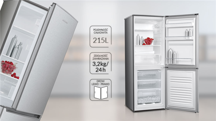 150x55x58, inox, F, 2-drzwiowa, 3 szuflady, dolny zamraż., mech., poj. chłodz. 138L, poj. zamr. 69L, 3,2kg/24h