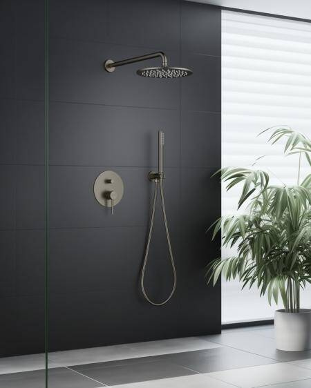 - Zestaw prysznicowy podtynkowy z deszczownicą i prysznicem grafit (gun metal)