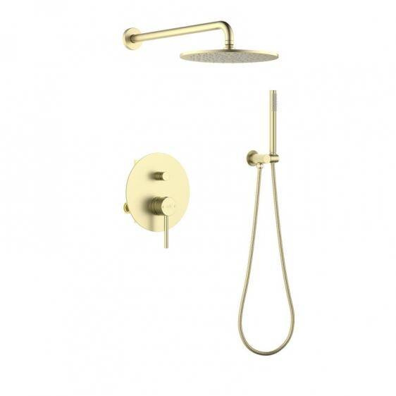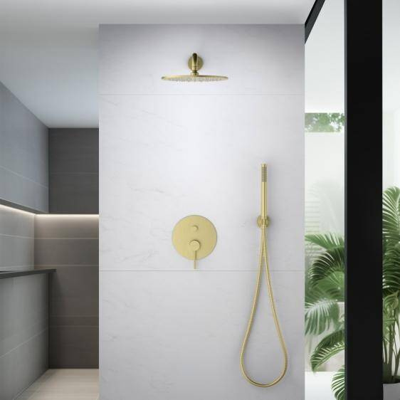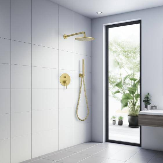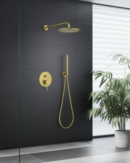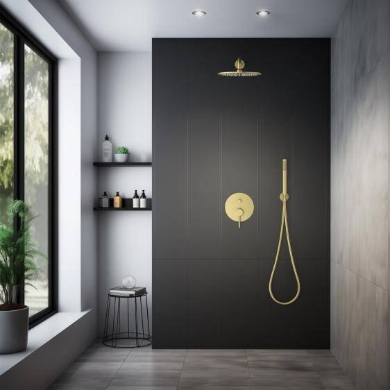 - Zestaw prysznicowy podtynkowy z deszczownicą i prysznicem w kolorze złoto szampańskie