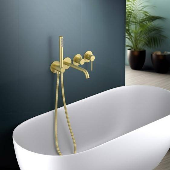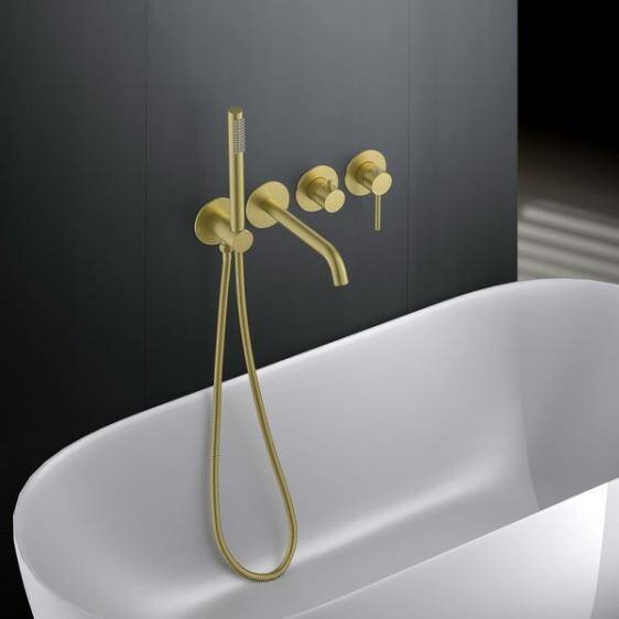 - Zestaw wannowy podtynkowy z wylewką i prysznicem złoto szampańskie