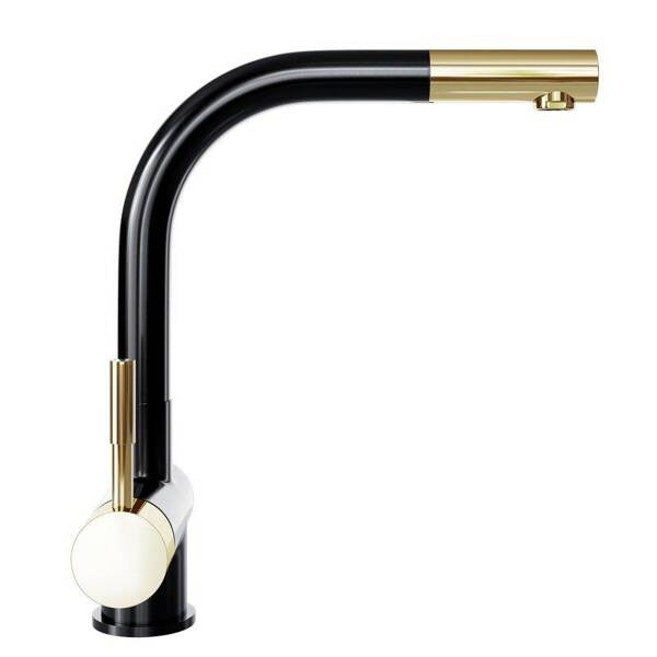Krótki opis: bateria kuchenna z wyciąganą wylewką. Wykonanie: mosiądz. Uchwyt: stop cynku. Linia Design Czarna bateria kuchenna ze złotą wyciąganą wylewką Wybierz Lobio black/Light Gold Ring i ciesz się pięknem i stylem, ale także niezrównaną funkcjonalnością w Twojej kuchni. To nie tylko bateria, to element, który podniesie komfort codziennych czynności i nada Twojej kuchni charakteru. Zamów już dziś i przekonaj się, jak wiele może zmienić jeden dobrze wybrany detal. Ogromną zaletą baterii jest wyciągana wylewka z solidnym mocowaniem, która pozwoli zadbać o najwyższy komfort zmywania. Elegancki, stylowy kształt sprawiają, że bateria znajdzie zastosowanie zarówno w nowoczesnych, jak i klasycznych kuchniach. Trwałość i Niezawodność Dzięki wykonaniu z wysokiej jakości mosiądzu i zastosowaniu powłoki PVD w kolorze złotym, bateria kuchenna Lobio gwarantuje długotrwałe użytkowanie bez obawy o uszkodzenia czy utratę koloru. Inwestycja w Lobio to gwarancja satysfakcji na lata. Ekskluzywne Detale – złota końcówka i uchwyt Dodaj swojej kuchni wyjątkowego blasku dzięki przemyślanym detalom baterii Lobio black/Light Gold Ring. Złota końcówka wylewki nie tylko podkreśla elegancję i unikalny styl tego produktu, ale także zapewnia trwałość i odporność na codzienne użytkowanie. Uchwyt do regulacji wody, również wykończony złotą powłoką, oferuje precyzyjną kontrolę nad temperaturą i siłą strumienia, łącząc w sobie funkcjonalność z niepowtarzalnym designem. Te złote akcenty są nie tylko praktyczne, ale także stanowią wyrafinowaną ozdobę, która wyróżni Twoją kuchnię na tle innych. Wybierając baterię Lobio, decydujesz się na produkt, w którym każdy detal został zaprojektowany z myślą o zadowoleniu użytkownika i estetyce przestrzeni. Zalety i korzyści dla użytkownika Wygodna w użytkowaniu dzięki wyciąganej wylewce Precyzyjne kierowanie strumieniem wody, tam gdzie tego potrzebujesz. Wygodnie umyjesz naczynia, sprzątniesz strefę wokół zlewu, czy napełnisz wysoki garnek wodą. Wyjątkowe wzornictwo i wykończenie w kolorze czarnym i złotym Trwała konstrukcja - zastosowany do produkcji baterii mosiądz cechuje się wysoką odpornością, co pozwoli użytkować baterię przez długie lata. Przeznaczenie: Bateria przeznaczona jest do użytku ze zlewozmywakami kuchennymi. Może być również montowana bezpośrednio na blacie. Zestaw zawiera: bateria, wężyki, zestaw mocujący, uszczelki. ID#