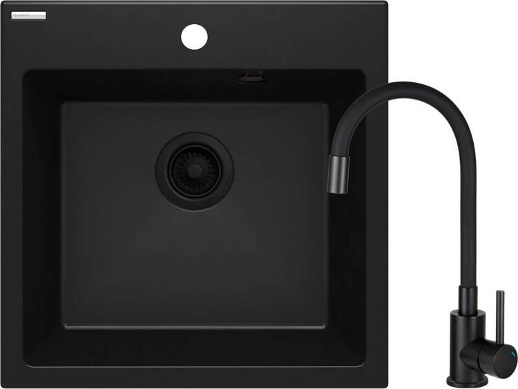 Zlewozmywak granitowy z baterią 1-komorowy (ZQJNN103) - Deante