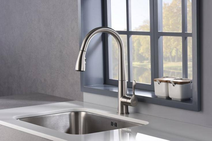- BATERIA Z WYCIĄGANĄ WYLEWKĄ Z PRZEŁĄCZNIKIEM STRUMIENIA WODY – wykończenie: kolor STALI– rączka mieszacza odchyla się do przodu, dzięki czemu można montować baterię pomiędzy zlewozmywakiem podwieszanym a ścianą.– wylewka obrotowa 360°– elastyczn