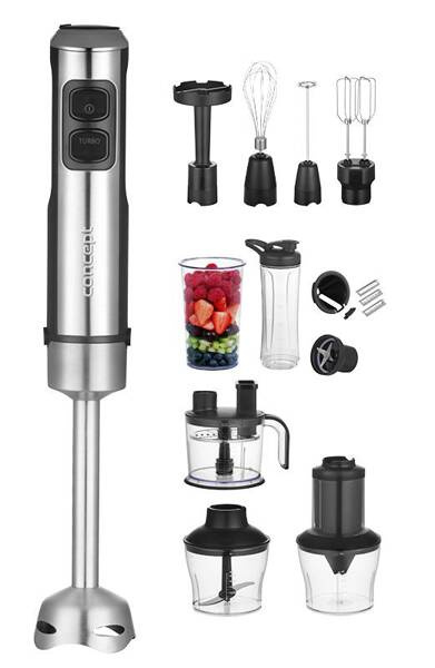 Miksuje, ubija, miesza, sieka, miażdży, trze. Blender ręczny Concept TM5500 potrafi to wszystko. Dzięki wysokowydajnemu silnikowi o mocy 1500 W jest to jeden z najmocniejszych blenderów ręcznych na rynku. Nic go nie powstrzyma i bez problemu poradzi sobie nawet z najtwardszymi składnikami, takimi jak orzechy, mrożonki czy lód. Ułatw sobie życie w kuchni dzięki blenderowi ręcznemu, który jest zawsze pod ręką.