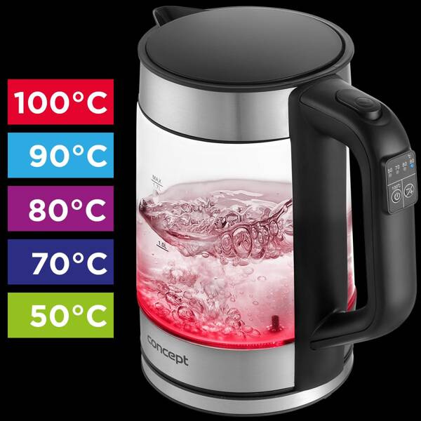 Czajnik wyposażony jest w cyfrowe sterowanie z możliwością regulacji temperatury od 50°C do punktu wrzenia. Z pewnością docenią to nie tylko miłośnicy herbaty i kawy, ale także rodzice małych dzieci podczas przygotowywania posiłków dla niemowląt. Szklany design czajnika przyjemnie uzupełnia kolorowe podświetlenie, które zmienia się w zależności od wybranej temperatury. Dostępna jest również praktyczna funkcja Keep Warm, która utrzymuje podgrzaną wodę w żądanej temperaturze.