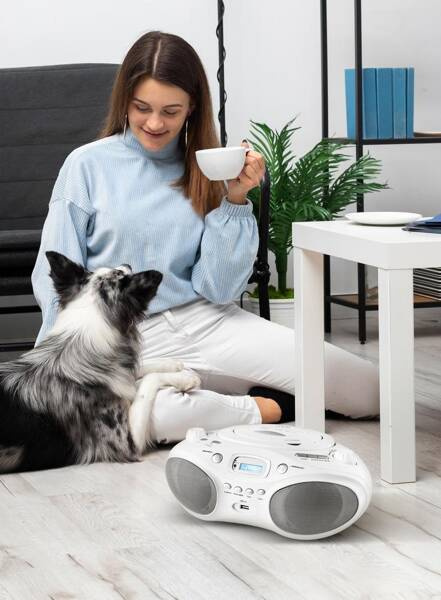 Urządzenie charakteryzuje się 2-kanałowym systemem audio oraz tunerem FM z RDS. Posiada odtwarzacz CD, który wspiera formaty CD-R i CD-RW, a także funkcję odtwarzania muzyki z USB w formacie MP3. Urządzenie jest niewielkich rozmiarów, co ułatwia jego przenoszenie. Radioodtwarzacz jest wyposażony w wyświetlacz LCD, uchwyt do przenoszenia oraz szereg innych funkcji, takich jak wyciszenie, podbicie basów, kompresja dynamicznego zakresu (DRC) oraz pamięć ostatniego ustawienia głośności. W zestawie znajduje się pilot oraz baterie do pilota.