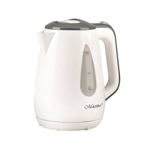 - MR-031-GREY Czajnik elektryczny 1,7l 2200W • pojemność: 1,7 l • moc: 2200W • materiał wykonania: tworzywo sztuczne • wymienny filtr antywapienny; obrotowa podstawa 360° • długość przewodu zasilającego: 70 cm • wymiary czajnika: 21 x 19 x 15 cm