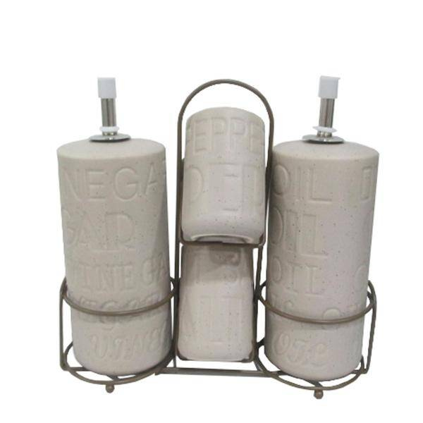 - MR-20028-04S Zestaw do przypraw 5 elementów "STONE" • butelka do octu • butelka do oleju • solniczka • pieprzniczka • aluminiowy stojak • materiał: ceramika