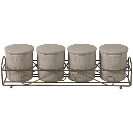 - MR-20028-04СS Zestaw pojemników 5 elementów "STONE" • komplet 4 pojemników do przypraw • materiał: ceramika • aluminiowy stojak