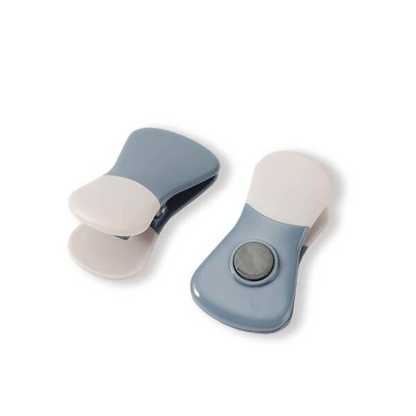 - MR-1190 Zestaw 2 klipsów z magnesem na lodówkę • klipsy magnetyczne – 2 szt. • materiał: silikon + tworzywo sztuczne • do zamykania opakowań i torebek • dzięki magnesowi możliwość przyczepienia do lodówki