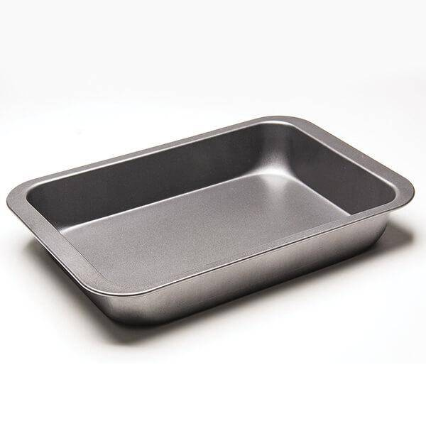 - MR-1106-36 Prostokątna forma do zapiekania 36 cm • prostokątna forma do pieczenia • materiał wykonania: stal węglowa • rozmiar zewnętrzny: 36 × 24,5 cm • rozmiar wewnętrzny: 31,5 × 21,7 cm • wysokość: 5,5 cm • powłoka non stick zabezpieczająca przed