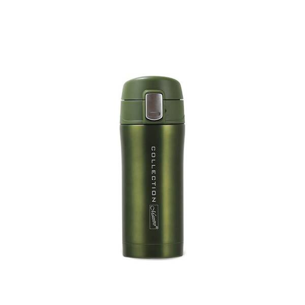 - MR-1641-32-GREEN Kubek termiczny 320 ml • pojemność: 320 ml • wymiary: 19 x 6,5 cm • waga produktu: 295 g • wygodny „dziubek” do picia, nie trzeba odkręcać • blokada otwierania zapobiega wylaniu napoju • materiał: stal nierdzewna 304 + tworzywo sztuczne
