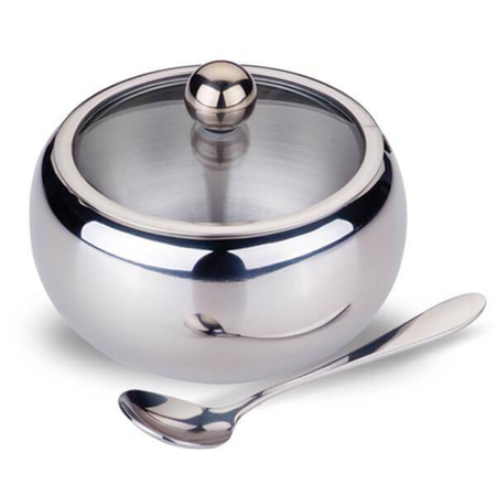 - MR-1696 Cukiernica 460 ml (S/N) • cukiernica • materiał: stal nierdzewna + szkło • pojemność: 460 ml • średnica: Ø 11 cm • szklana pokrywka • łyżeczka w komplecie