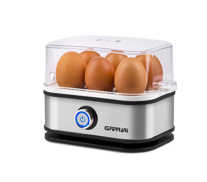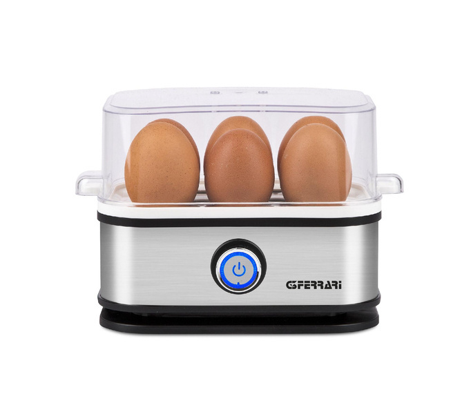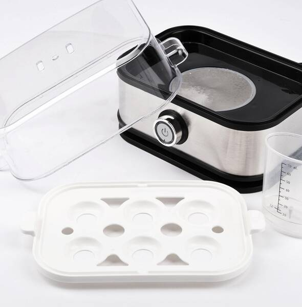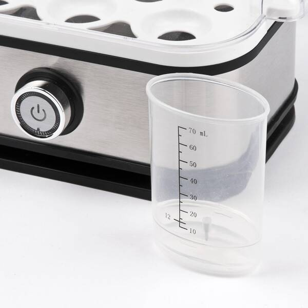 - Moc 400W Gotowanie na parze Do 6 jaj Płyta grzewcza ze stali nierdzewnej Przycisk ON/OFF z lampką zasilania Obudowa ze stali nierdzewnej Zwijacz kabla Nóżki antypoślizgowe Miarka Zasilanie: AC 220-240V ~ 50-60Hz