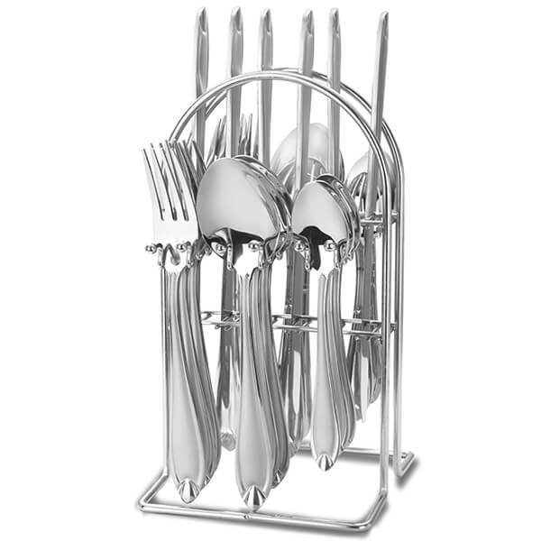 - MR-1530-24 Komplet sztućców 24 szt. • komplet sztućców: 24 szt. • materiał: stal nierdzewna • łyżki stołowe – 6 szt. • widelce stołowe – 6 szt. • noże stołowe – 6 szt. • łyżeczki do herbaty – 6 szt.