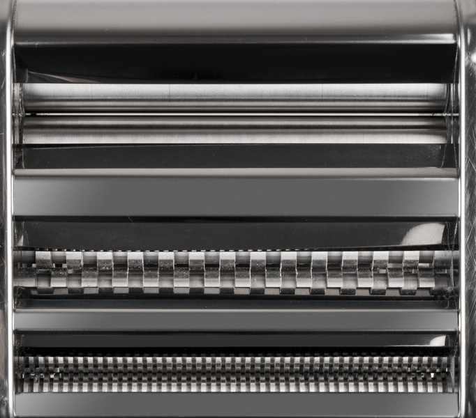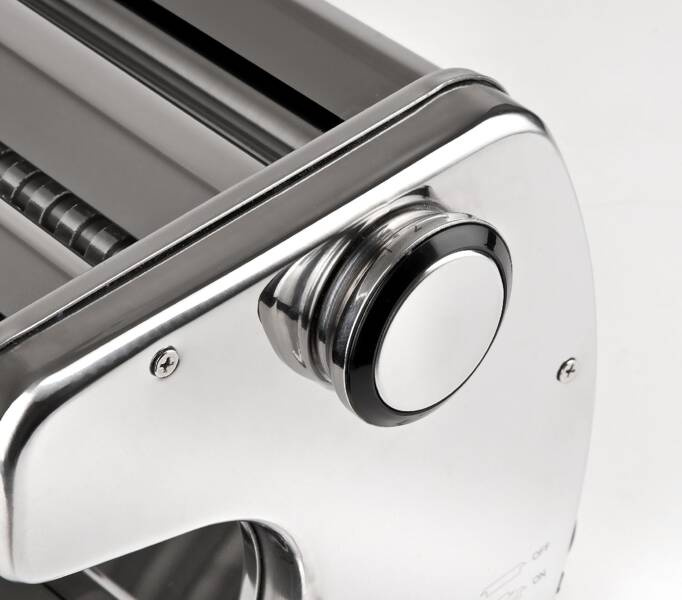 - Moc: 70W Maszynka do makaronu z 7 regulacjami grubości (0,2 do 2,5 mm) 3 rodzaje makaronów: lasagne, tagliatelle, spaghetti rolki 18 cm Funkcja automatyczna Obudowa i rolki ze stali nierdzewnej, dopuszczone do kontaktu z żywnością Do 90 minut ciągłej prac