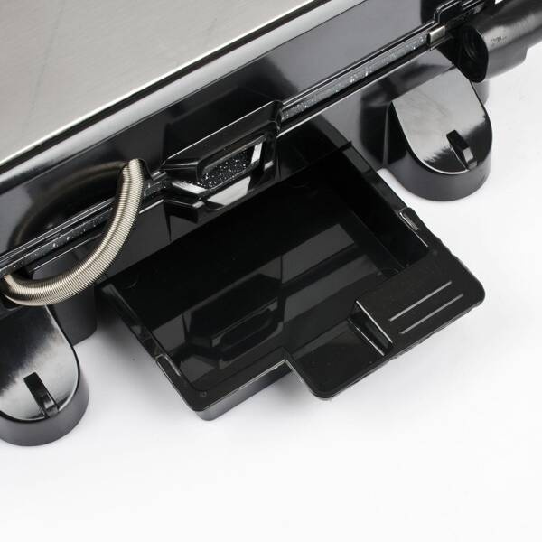 - Moc: 2000 W Nieprzywierające płyty z powłoką „Petravera”. Wymiary talerzy: 29,3 x 23 cm z otwieraniem pod kątem 180° Regulowana temperatura gotowania Zdejmowane płyty ułatwiające czyszczenie Pojemnik na ociekający olej Obudowa ze stali nierdzewnej Wymiary