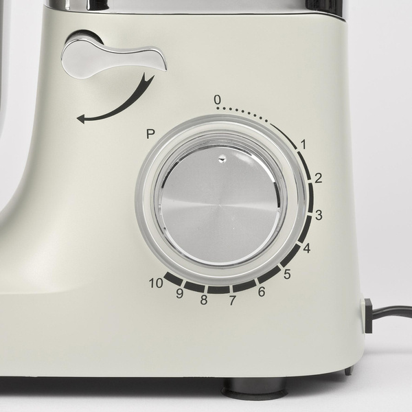 - Moc: 1300 W (maks. 1500 W) 10 prędkości + PULSE Misa ze stali nierdzewnej o pojemności 6 litrów z pokrywą Może przetwarzać do 2,4 kg składników Antypoślizgowe nóżki dla maksymalnej stabilności Wyłącznik bezpieczeństwa Akcesoria: hak do ugniatania i miesza