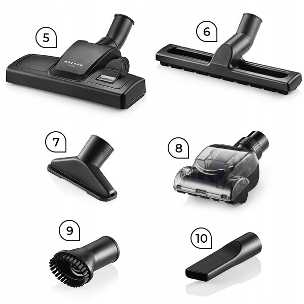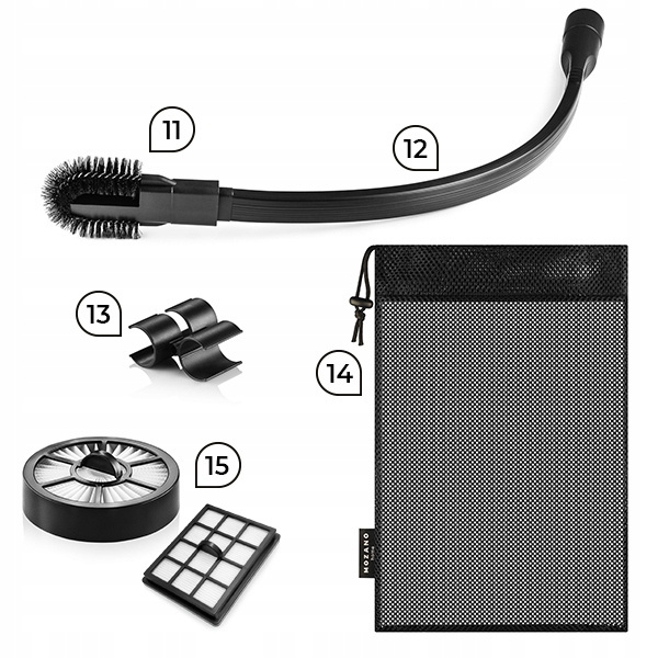 - Szeroki pakiet akcesoriów - aż 14 elementów w zestawie min. turboszczotka, elastyczna ssawka szczelinowa