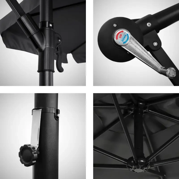 - Mechanizm korbowy pozwalający na szybkie rozkładanie i składanie parasola bez wysiłku