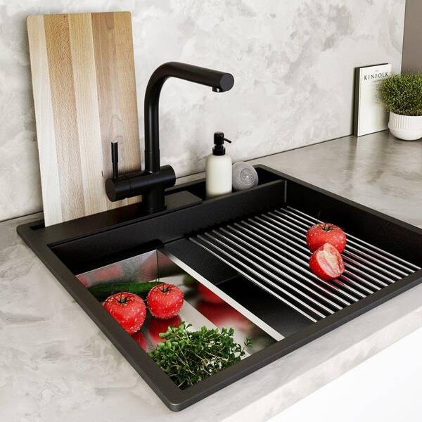 Zlewozmywak granitowy SILVANO 60.1 BLACK/IX - osprzęt chrom Odkryj niezrównaną jakość i elegancję zlewu granitowego Silvano, stworzonego z myślą o najbardziej wymagających użytkownikach. Nasze zlewy łączą w sobie nowoczesny design z wyjątkową funkcjonalnością, dzięki czemu idealnie wkomponują się w każdą kuchnię. Zlewozmywak Silvano zawiera: zlewozmywak, syfon, kratkę odpływową, zwijaną matę i deskę. Zalety i korzyści dla użytkownika zlewu Silvano: Mata zwijana w kolorze chrom i deska w zestawie - Mata może służyć jako odsączarka do naczyń, podstawka pod naczynia lub dodatkowa powierzchnia robocza, co zwiększa funkcjonalność zlewu. Deska w zestawie stanowi dodatkową, stabilną powierzchnię do krojenia. Pole odstawcze - zlew posiada dodatkowa przestrzeń na odstawienie deski do krojenia oraz środków i akcesoriów do mycia naczyń dzięki czemu można mieć je zawsze pod ręką. Odporność na wysoką temperaturę - Zlew Silvano bez trudu wytrzymuje wysokie temperatury, co czyni go idealnym do codziennego użytku w kuchni. Bez obaw możesz stawiać na nim gorące garnki czy blachy prosto z piekarnika. Odporność na uderzenia - Wysokiej jakości granit, z którego wykonany jest nasz zlew, gwarantuje odporność na wszelkiego rodzaju uderzenia i mechaniczne uszkodzenia. Silvano to inwestycja na lata! Odporność na szok termiczny - Nagłe zmiany temperatury nie stanowią żadnego problemu dla naszego zlewu. Dzięki specjalnej technologii produkcji, Silvano jest odporny na szok termiczny, co zapewnia jego długowieczność. Odporność na przebarwienia - Wybierz zlew, który zawsze wygląda jak nowy! Granit z którego wykonany został Silvano jest odporny na przebarwienia, nawet przy intensywnym użytkowaniu. Ciesz się nieskazitelną estetyką przez wiele lat. Odporność na zarysowania - Dzięki specjalnie dopracowanej powierzchni, zlew Silvano jest odporny na zarysowania, co sprawia, że zawsze wygląda elegancko i schludnie. Łatwy do czyszczenia - Utrzymanie zlewu w czystości nigdy nie było prostsze. Powierzchnia granitowa jest gładka, co ułatwia codzienne czyszczenie i pielęgnację. Odporność na zabrudzenia - Nasz zlew granitowy jest odporny na zabrudzenia, dzięki czemu zawsze prezentuje się estetycznie, niezależnie od intensywności użytkowania. Zlewy granitowe GLOBALO - 10 lat gwarancji! Nasz zlew został stworzony z najwyższej klasy naturalnego kruszywa granitowego i żywicy organicznej. Użycie najlepszych materiałów oraz zaawansowany technologicznie proces produkcji sprawiają, że nasze zlewy są wyjątkowo trwałe i są gotowe sprostać wszelkim wyzwaniom kuchennym! Zlew granitowy Silvano - sposób montażu Zlewozmywak Silvano jest przeznaczony do montażu na blacie. Jak dbać o zlew z granitu? Pamiętaj o regularnej pielęgnacji i profilaktycznym myciu zlewozmywaka miękką ściereczką i gorącą wodą z neutralnym detergentem lub bez niego. Powierzchnię zlewozmywaka wysusz po każdym użyciu za pomocą miękkiej ściereczki. Osad i plamy można usunąć za pomocą dedykowanych preparatów przeznaczonych do tego typu zanieczyszczeń. #ID640