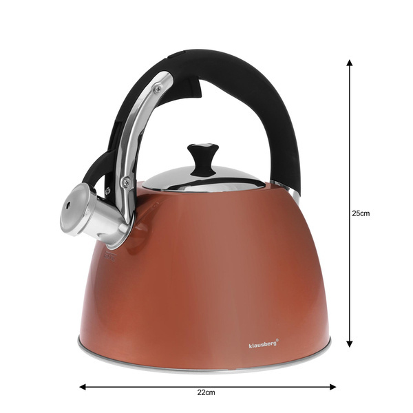 - Czajnik stalowy 3l wykonany z wysokiej jakości stali nierdzewnej INOX lakierowanej na kolor miedziany. Odpowiedni do wszystkich rodzajów kuchenek i płyt: elektrycznych, ceramicznych, gazowych, halogenowych, indukcyjnych.
