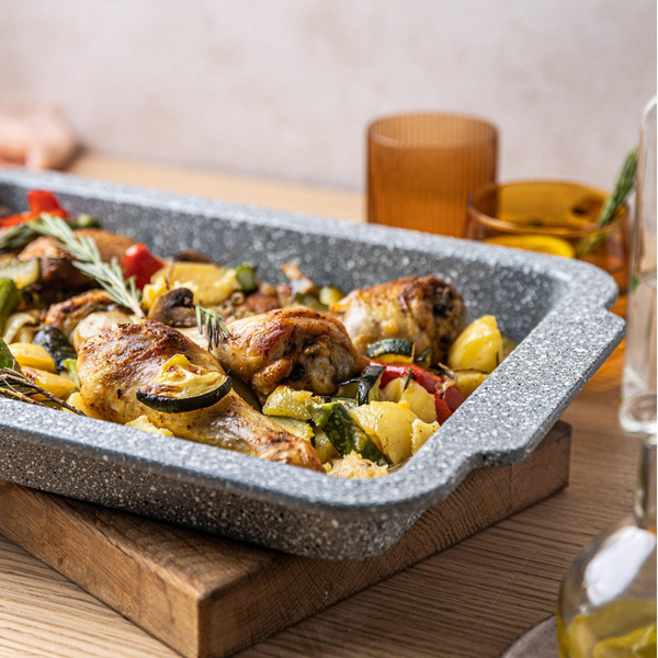 - Duża forma prostokątna idealna do pieczenia serników, mazurków, szarlotek.