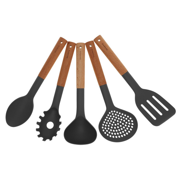 - Zestaw przyborów kuchennych wykonanych z drewna i nylonu termoplastycznego.