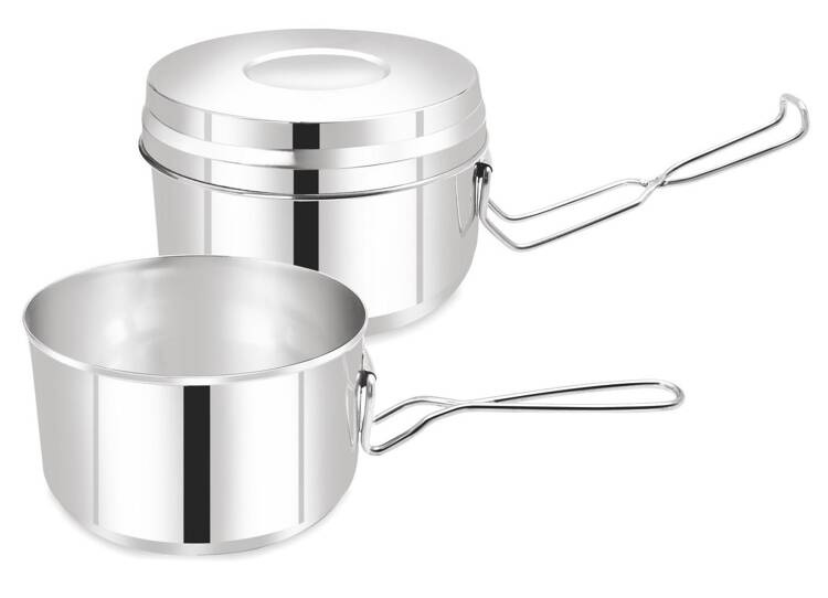 - Dwa wkładane w siebie naczynia do gotowania i pokrywka.