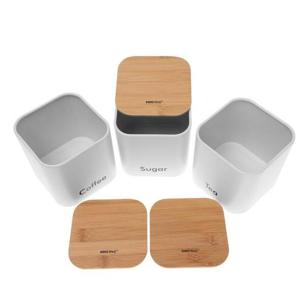 Pojemnik kuchenny zestaw 3 elementy stal-bambus, biały Kinghof KH-1526
