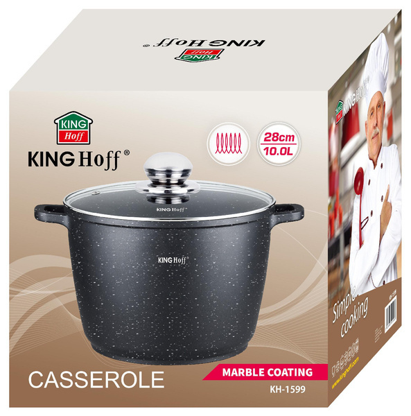 - Wysokiej jakości garnek marmurowy Ø28cm /10L ze szklaną pokrywą. Wykonany z odlewu aluminiowego pokrytego marmurową powłoką nieprzywierającą