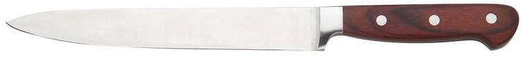 - Nóż wykonany z wysokiej jakości stali nierdzewnej Ferrinox 18/10 o wysokiej zawartości węgla 1.4028/X30Cr13 Istotną cechą tej stali jest fakt, że jest odporna na wszelkiego rodzaju zadrapania, zarysowania, charakteryzuje się zwiększoną odpornością na ści